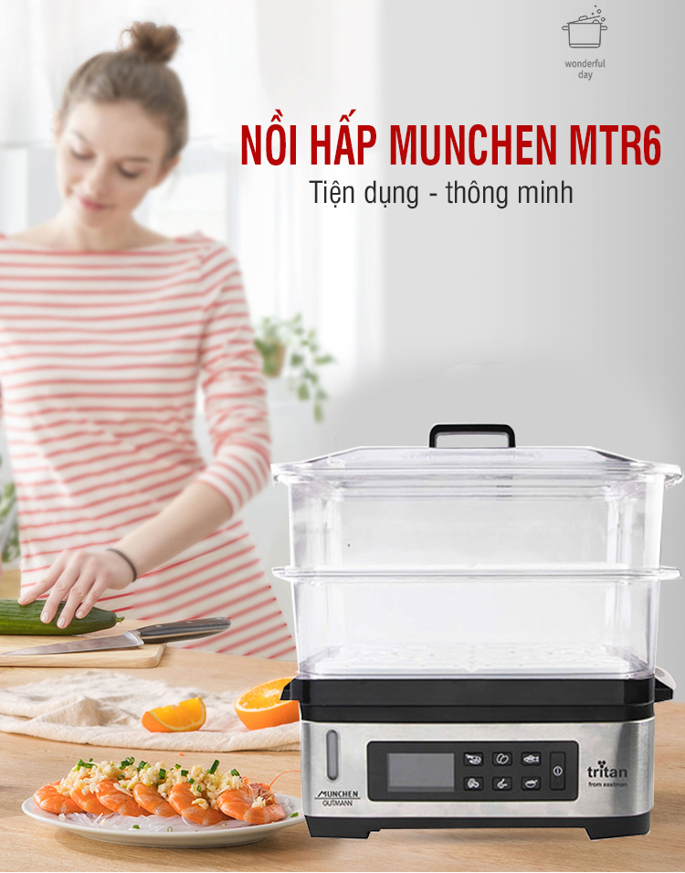 Nồi hấp Munchen MTR6 phù hợp cho mọi gia đình, giúp chế biến các món hấp một cách đơn giản trong các bữa ăn hàng ngày.